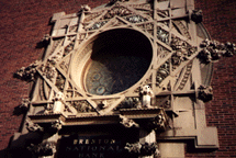 “...Els diversos elements estructurals que envolten a la gran porta... estan superposats com ornaments i com estructura. Tenen moltes contigüitats redundants i retòriques d’una classe d’ornament que està “sobre” l’estructura(...) Les mènsules o els sortints que disminueixen la llum, són suggerides per les diagonals de les cantonades superiors de l’obertura. L’exagerada clau està superposada sobre l’arc rebaixat, el dintell i el timpà de l’arc. A les seves relacions complexes aquests elements són a la vegada en graus diferents, estructurals i ornamentals, sovint redundants i alguns cops reminiscents. A la combinació quasi igual d’horitzontals, verticals, diagonals i corbes, es corresponen amb els marcs superposats al voltant de la finestra d’ull de bou de l’edifici en forma cúbica del Merchant’s National Bank...”