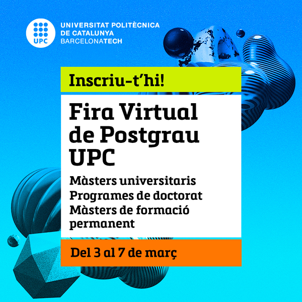 Del 3 al 7 de març de 2025 tindrà lloc la 3a edició de la Fira virtual de Postgrau de la UPC.